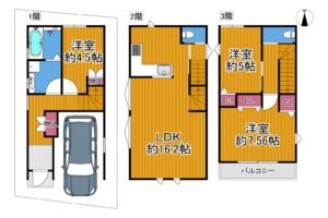 ・3階建て・3LDKプランで、家族がそれぞれの時間を過ごせるゆとりある間取り設計可能♪