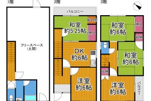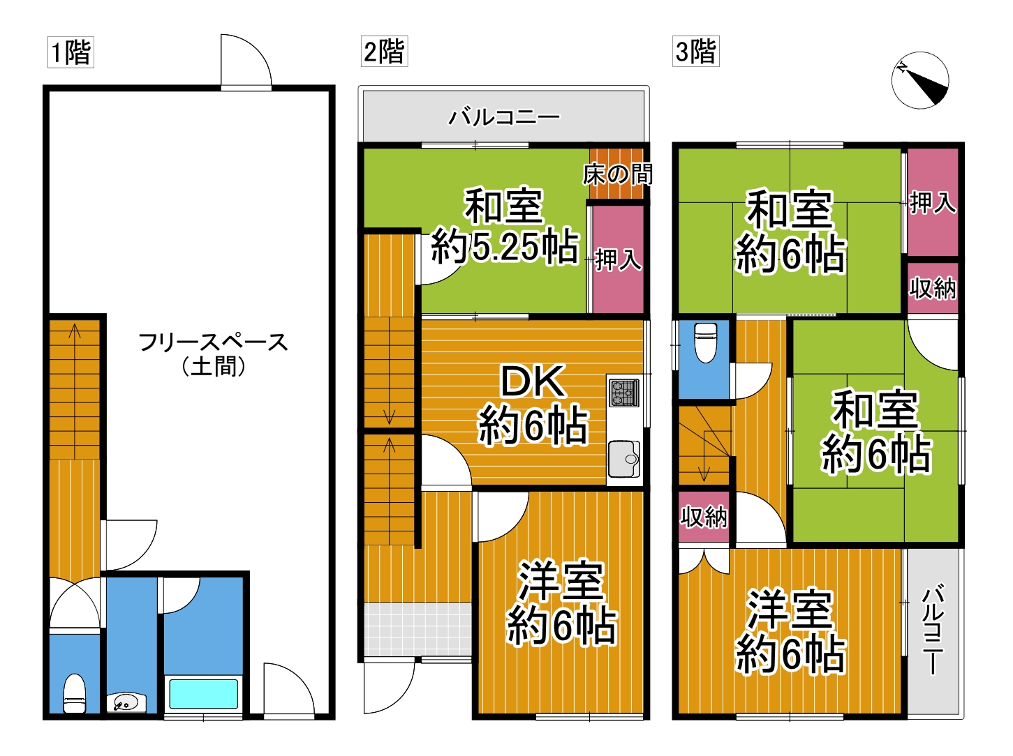 ・2階・3階それぞれにバルコニー付き